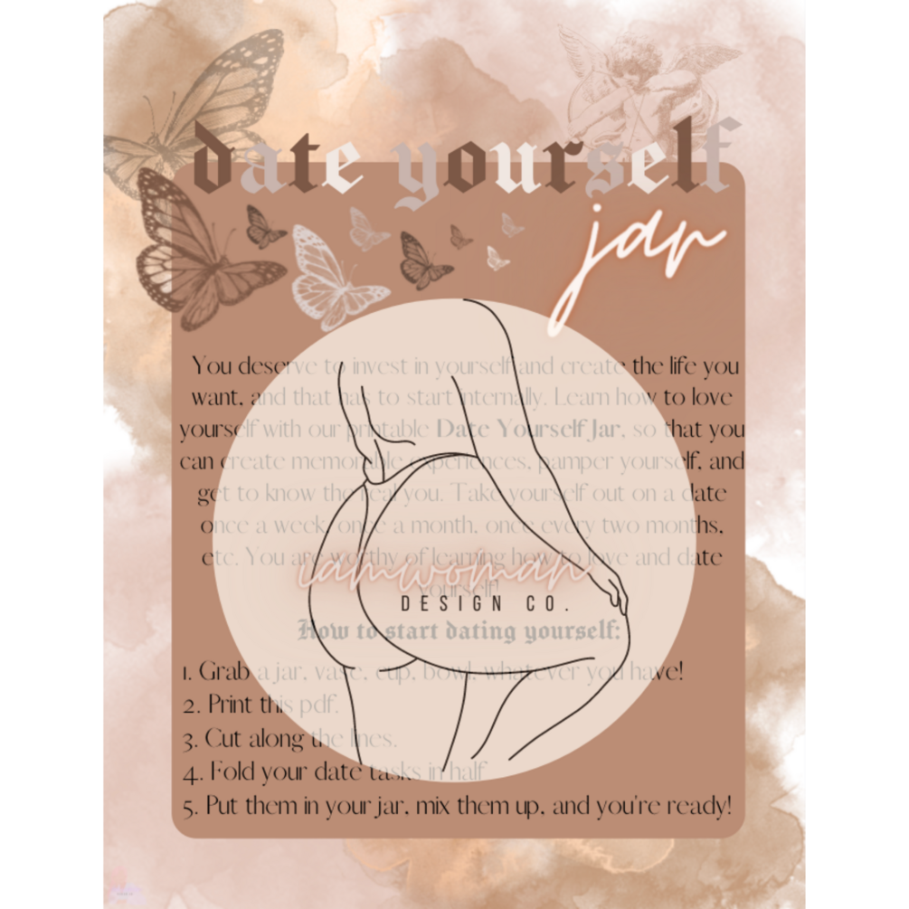Calling all hot girls who want to become "that" girl! Our Printable Date Yourself Jar will transform your life! Learn how to love, pamper, and treat yourself how you'd want a partner to treat you.